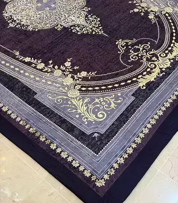 روفرشی کشدار مدل B2102 با رنگ زمینهی بادمجونی و ترکیب چشمنواز یاسی و کرم طلایی، جلوهای اصیل و شیک به دکور خانه میبخشد. جنس مخمل شانل با تراکم بالا علاوه بر دوام عالی، درخشندگی خاصی به طرح سنتی این مدل میدهد.