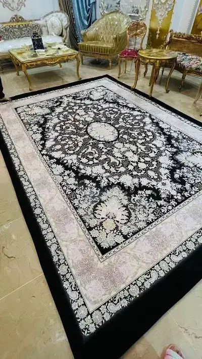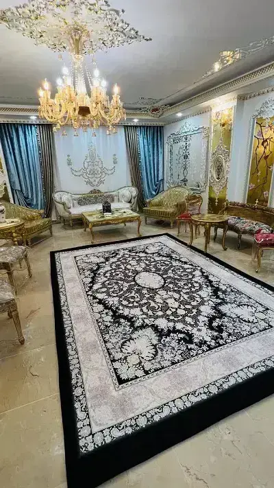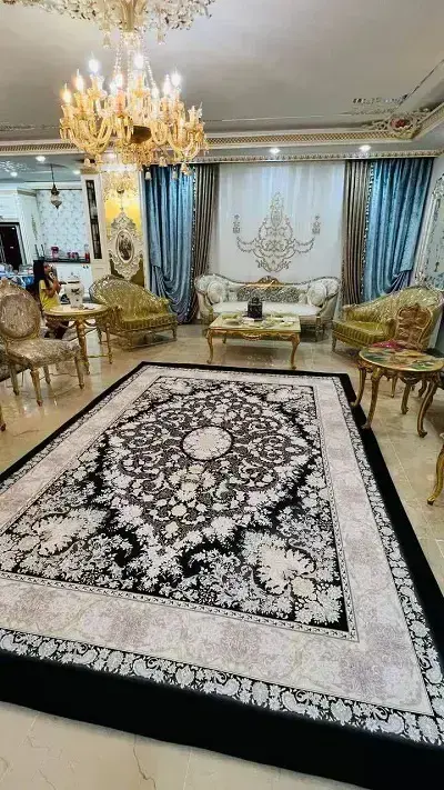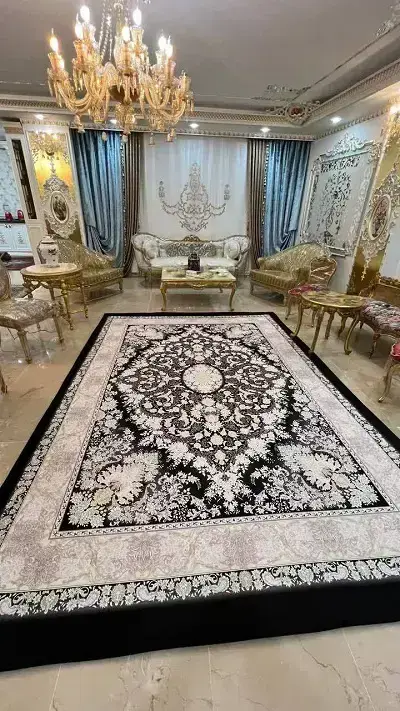 این روفرشی دارای زمینهای مشکی و براق است که باعث میشود طرح کلاسیک آن جلوهای بسیار مجلل پیدا کند.
