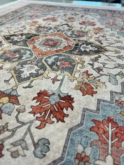 🌟 طراحی فاخر با پوشش کامل و تثبیت عالی روفرشی کشدار کد C712 با استفاده از مخمل شانل با تراکم بالا تولید شده است که بافتی لطیف، نرم و درعین حال مقاوم دارد. طرح سنتی الهام گرفته از نقشهای گلدار و هندسی کلاسیک، با رنگهای آبی، قرمز، نارنجی و بژ، جلوه ای گرم و چشمنواز به دکوراسیون شما میبخشد.