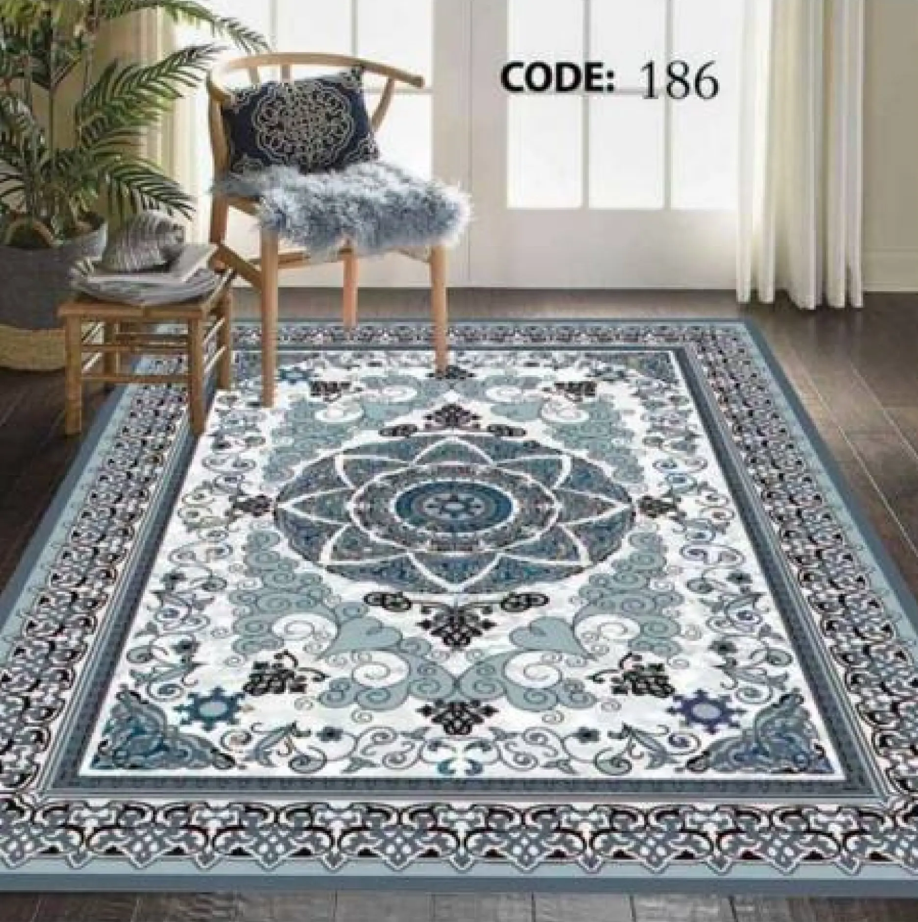 روفرشی کشدار کد A186 از جنس مخمل شانل با تراکم بالا است که ضمن داشتن بافتی نرم و لطیف، دوام بسیار بالایی نیز دارد. این روفرشی ها به صورت کامل کشدوزی شدهاند و یک کش کمری محکم در قسمت میانی آن ها تعبیه شده است که از جمع شدن یا جابهجایی روفرشی روی فرش جلوگیری نموده و باعث فیکس شدن کامل روی سطح فرش میشود.