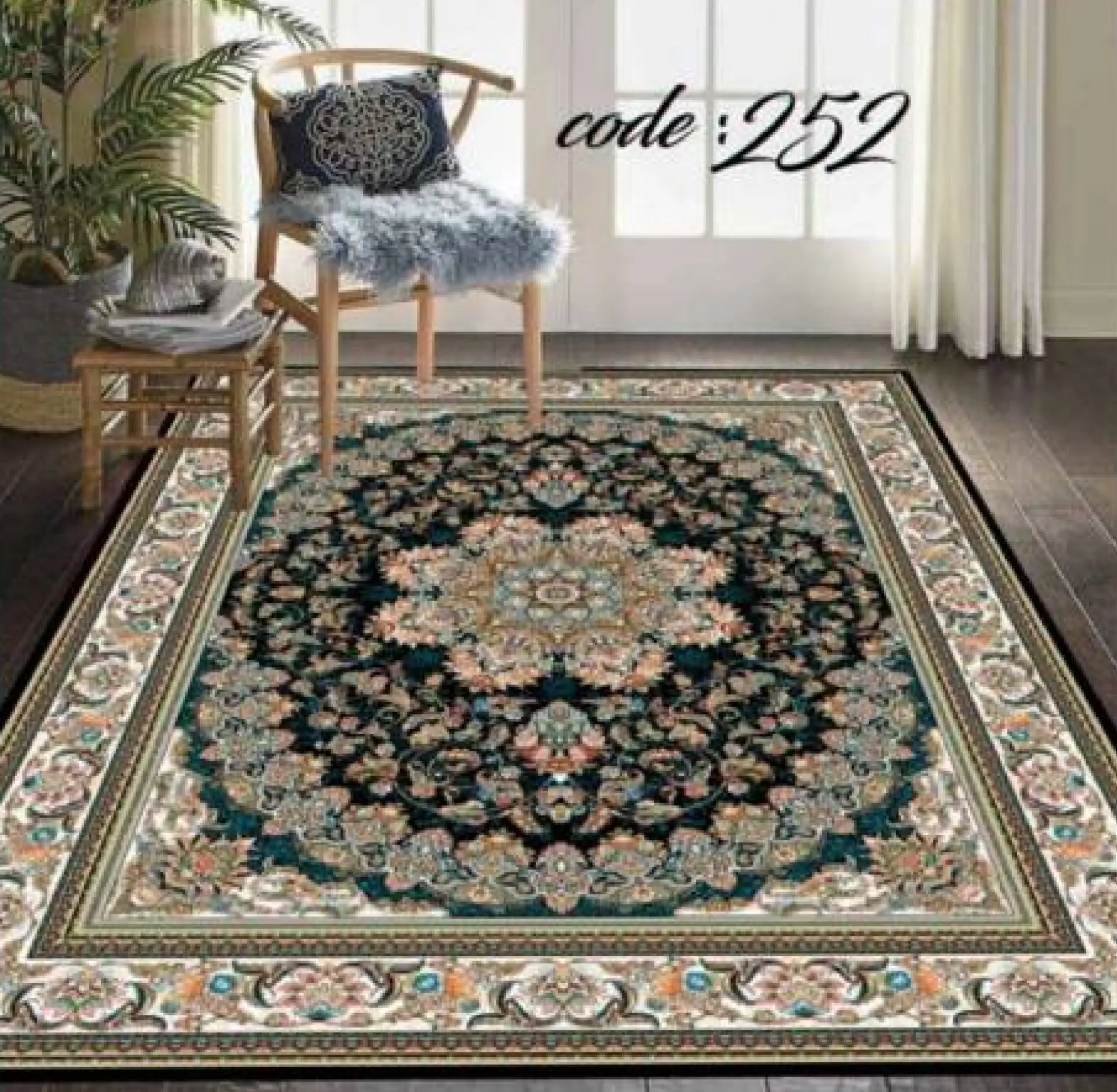 روفرشی کشدار کد A252 از جنس مخمل شانل با تراکم بالا است که ضمن داشتن بافتی نرم و لطیف، دوام بسیار بالایی نیز دارد. این روفرشی ها به صورت کامل کشدوزی شدهاند و یک کش کمری محکم در قسمت میانی آن ها تعبیه شده است که از جمع شدن یا جابهجایی روفرشی روی فرش جلوگیری نموده و باعث فیکس شدن کامل روی سطح فرش میشود.