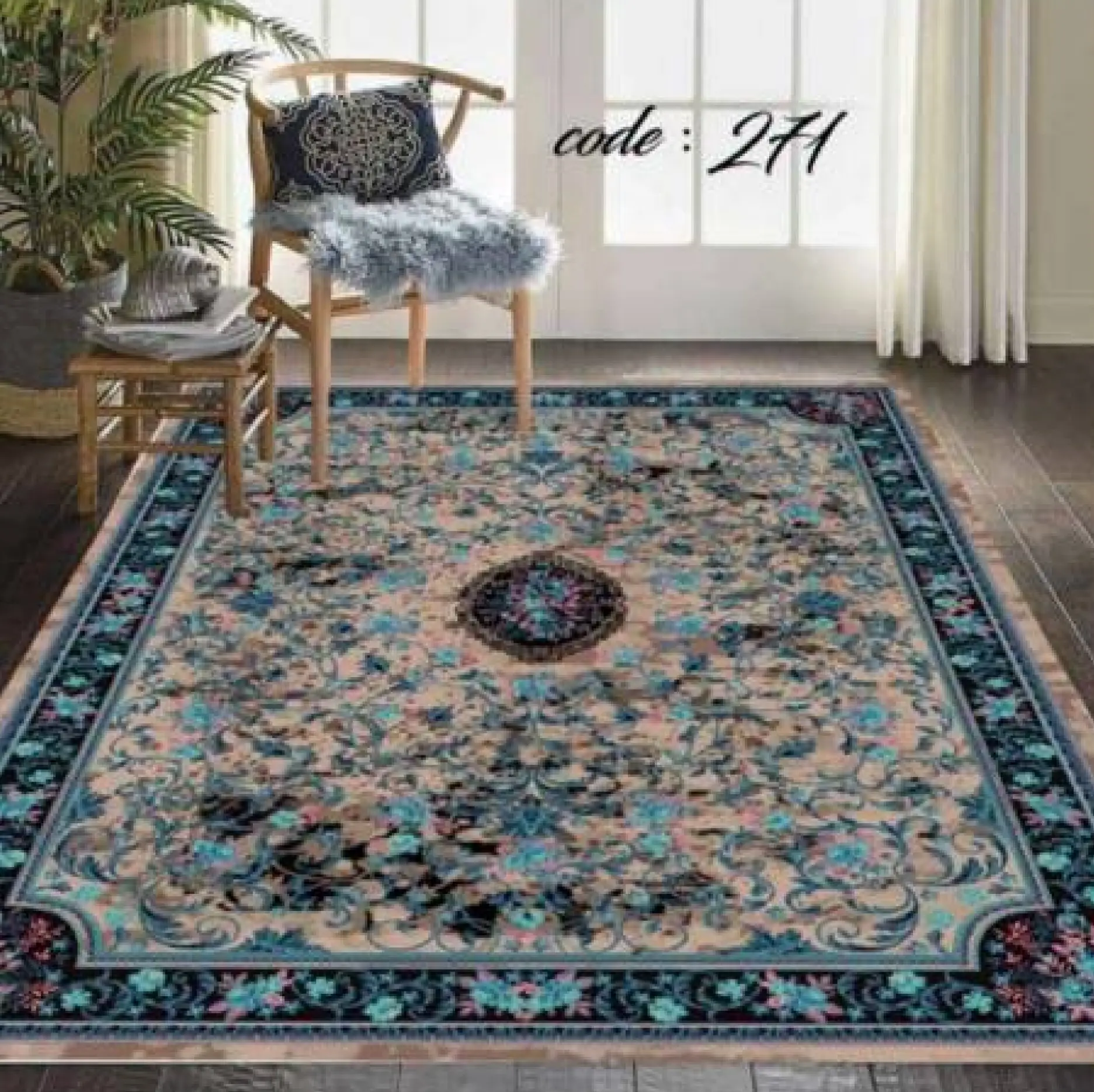 روفرشی کشدار کد A271 از جنس مخمل شانل با تراکم بالا است که ضمن داشتن بافتی نرم و لطیف، دوام بسیار بالایی نیز دارد. این روفرشی ها به صورت کامل کشدوزی شدهاند و یک کش کمری محکم در قسمت میانی آن ها تعبیه شده است که از جمع شدن یا جابهجایی روفرشی روی فرش جلوگیری نموده و باعث فیکس شدن کامل روی سطح فرش میشود.