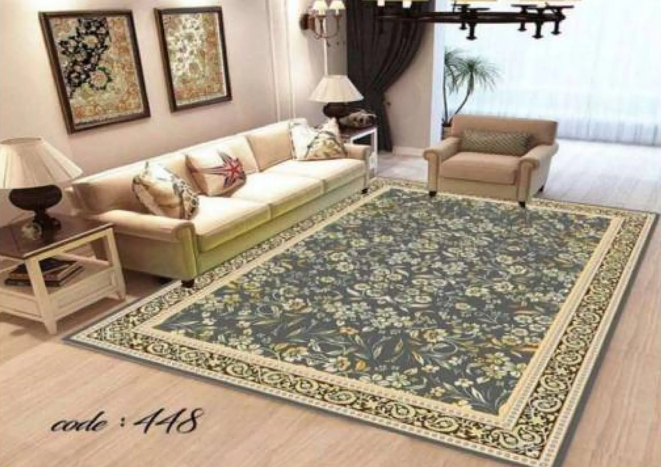روفرشی‌ کشدار کد A448 از جنس مخمل شانل با تراکم بالا است که ضمن داشتن بافتی نرم و لطیف، دوام بسیار بالایی نیز دارد. این روفرشی‌ ها به‌ صورت کامل کشدوزی شده‌اند و یک کش کمری محکم در قسمت میانی آن‌ ها تعبیه شده است که از جمع شدن یا جابه‌جایی روفرشی روی فرش جلوگیری نموده و باعث فیکس شدن کامل روی سطح فرش می‌شود.