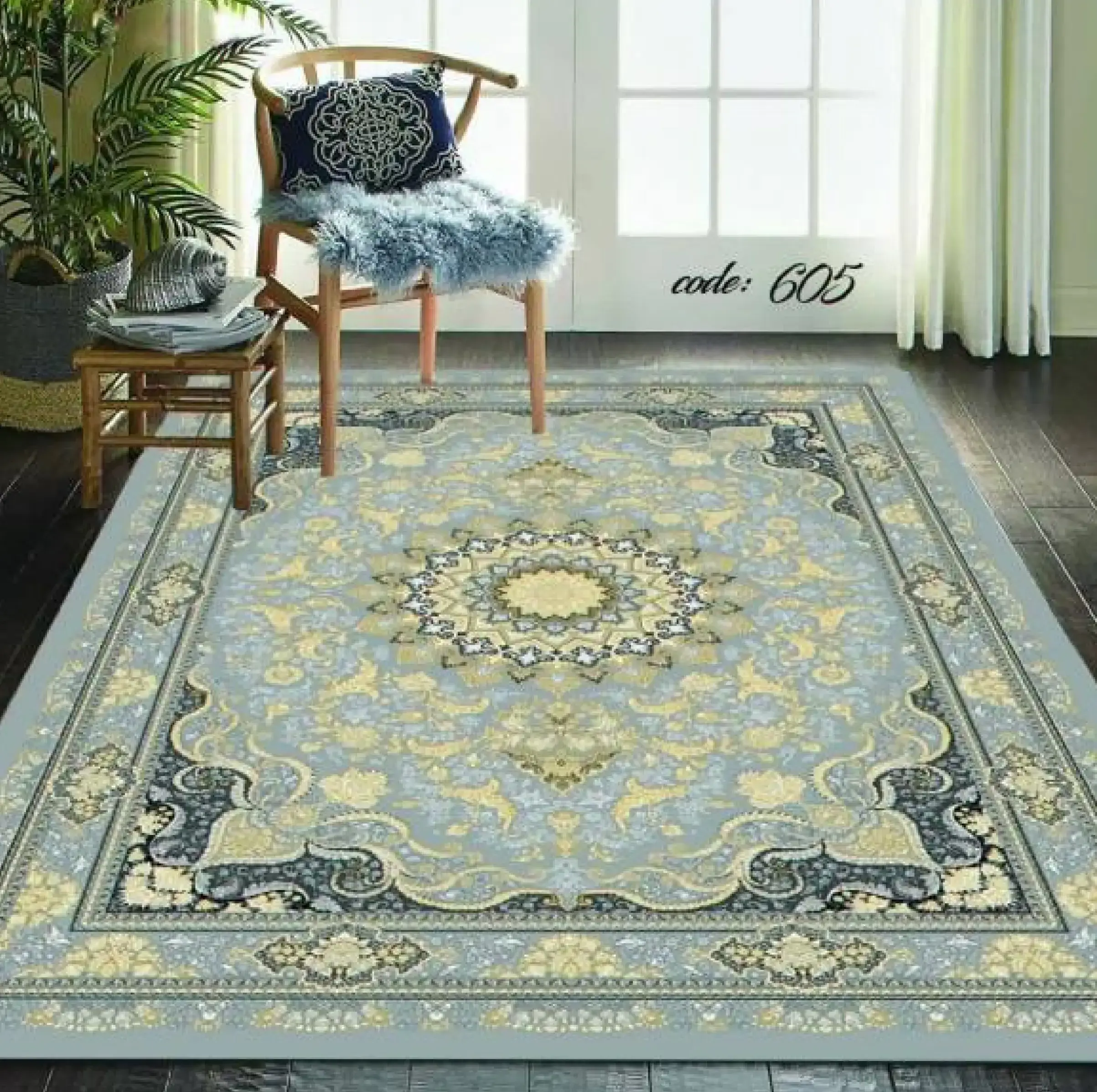 روفرشی‌ کشدار کد A605 از جنس مخمل شانل با تراکم بالا است که ضمن داشتن بافتی نرم و لطیف، دوام بسیار بالایی نیز دارد. این روفرشی‌ ها به‌ صورت کامل کشدوزی شده‌اند و یک کش کمری محکم در قسمت میانی آن‌ ها تعبیه شده است که از جمع شدن یا جابه‌جایی روفرشی روی فرش جلوگیری نموده و باعث فیکس شدن کامل روی سطح فرش می‌شود.
