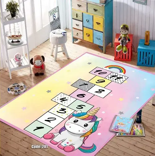 در تصویر محصول، طرح یونیکورن با رنگینکمانهای جذاب و اعداد لیلی باعث ایجاد فضایی شادیبخش و کودکانه شده است. این طرح با ترکیب المانهای فانتزی، نه تنها کاربردی، بلکه تزئینی نیز هست و به اتاق کودک جلوهای متفاوت و رویایی میبخشد.