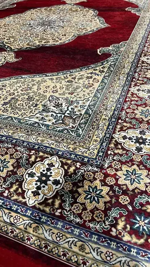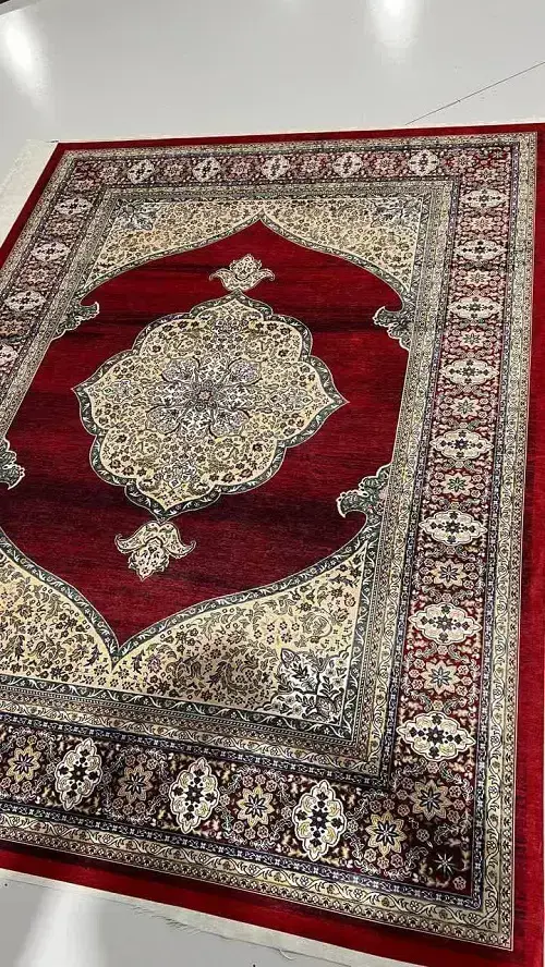 طرح: الهامگرفته از فرشهای اصیل با مدالیون مرکزی و حاشیههای هندسی
