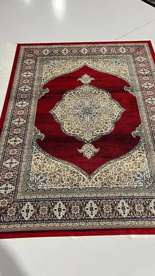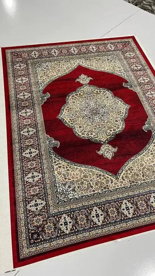 روفرشی کشدار A653 انتخابی عالی برای فرشهایی با زمینهی زرشکی تیره و نقشهای کرم، بژ و مشکیه. این محصول با طراحی کلاسیک، بافت مخملی و دوخت دقیق، هم زیبایی فرش رو حفظ میکنه، هم از اون در برابر چربی، سایش و لک محافظت میکنه.