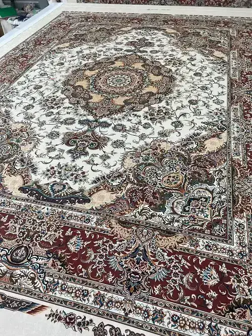 طرح: گلدار سنتی با مدالیون مرکزی و حاشیههای تزئینی هماهنگ با فرشهای اصیل ایرانی