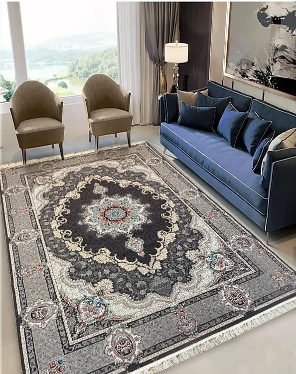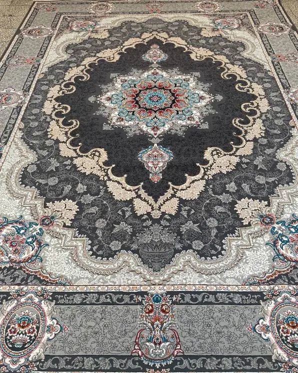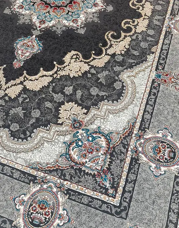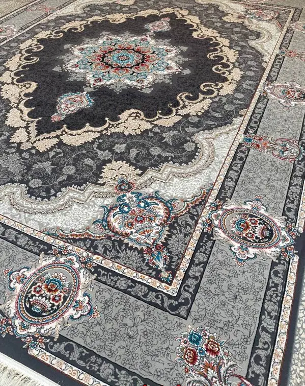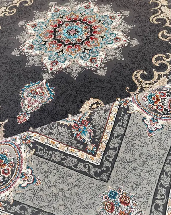 فرش ماشینی سرمهای طرح کرشمه در سایزهای ۶، ۹ و ۱۲ متری عرضه میشود.
