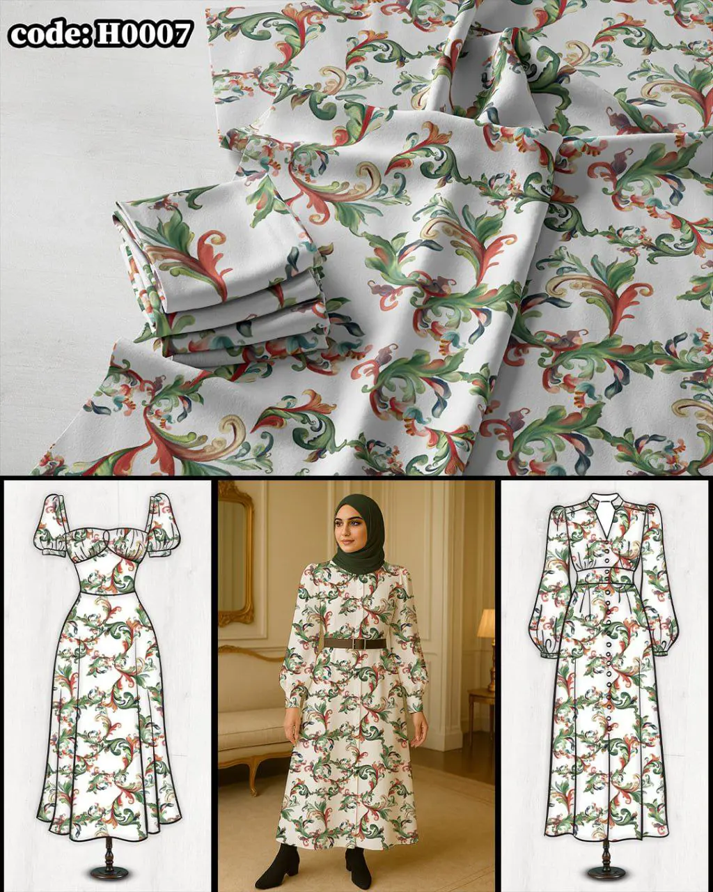 پارچه لباسی کد H0007 از مجموعه پارچههای خاص و باکیفیت برند ترمه کاور است که با چاپ دقیق، رنگهای زنده و طراحی منحصربهفرد، زیبایی و وقار را به استایل شما هدیه میدهد. این طرح برای دوخت انواع لباسهای مجلسی، مانتو، سارافون و دامن بسیار مناسب است.