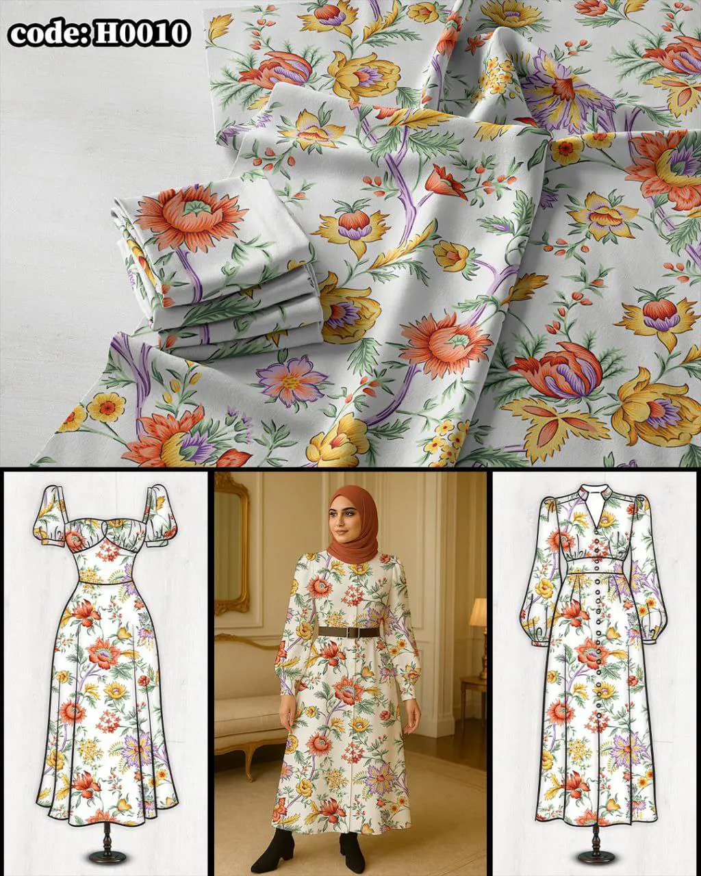 پارچه لباسی کد H0010 از مجموعه پارچههای خاص و باکیفیت برند ترمه کاور است که با چاپ دقیق، رنگهای زنده و طراحی منحصربهفرد، زیبایی و وقار را به استایل شما هدیه میدهد. این طرح برای دوخت انواع لباسهای مجلسی، مانتو، سارافون و دامن بسیار مناسب است.