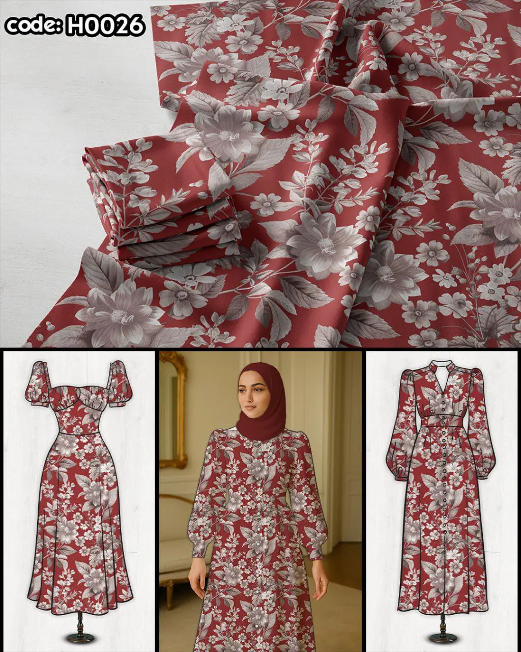 پارچه لباسی کد H0026 از مجموعه پارچههای خاص و باکیفیت برند ترمه کاور است که با چاپ دقیق، رنگهای زنده و طراحی منحصربهفرد، زیبایی و وقار را به استایل شما هدیه میدهد. این طرح برای دوخت انواع لباسهای مجلسی، مانتو، سارافون و دامن بسیار مناسب است.