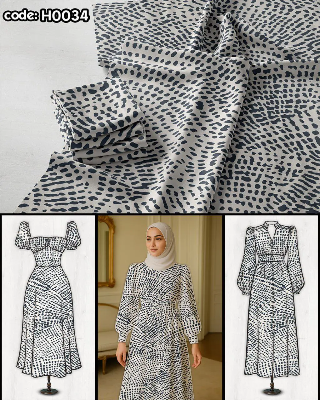 پارچه لباسی کد H0034 از مجموعه پارچههای خاص و باکیفیت برند ترمه کاور است که با چاپ دقیق، رنگهای زنده و طراحی منحصربهفرد، زیبایی و وقار را به استایل شما هدیه میدهد. این طرح برای دوخت انواع لباسهای مجلسی، مانتو، سارافون و دامن بسیار مناسب است.