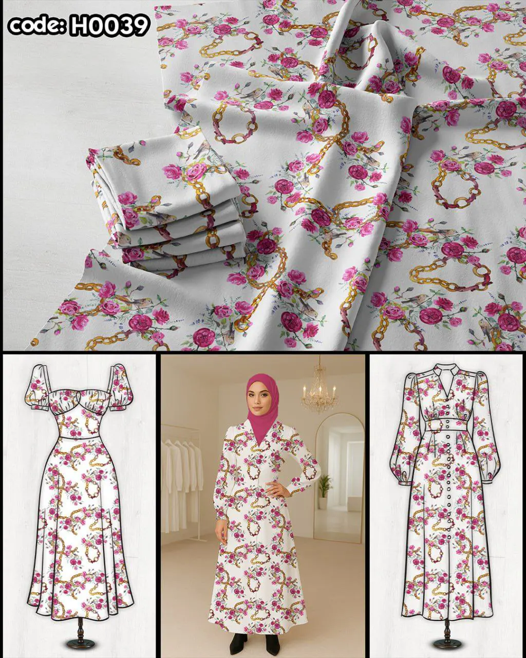 پارچه لباسی کد H0039 از مجموعه پارچههای خاص و باکیفیت برند ترمه کاور است که با چاپ دقیق، رنگهای زنده و طراحی منحصربهفرد، زیبایی و وقار را به استایل شما هدیه میدهد. این طرح برای دوخت انواع لباسهای مجلسی، مانتو، سارافون و دامن بسیار مناسب است.