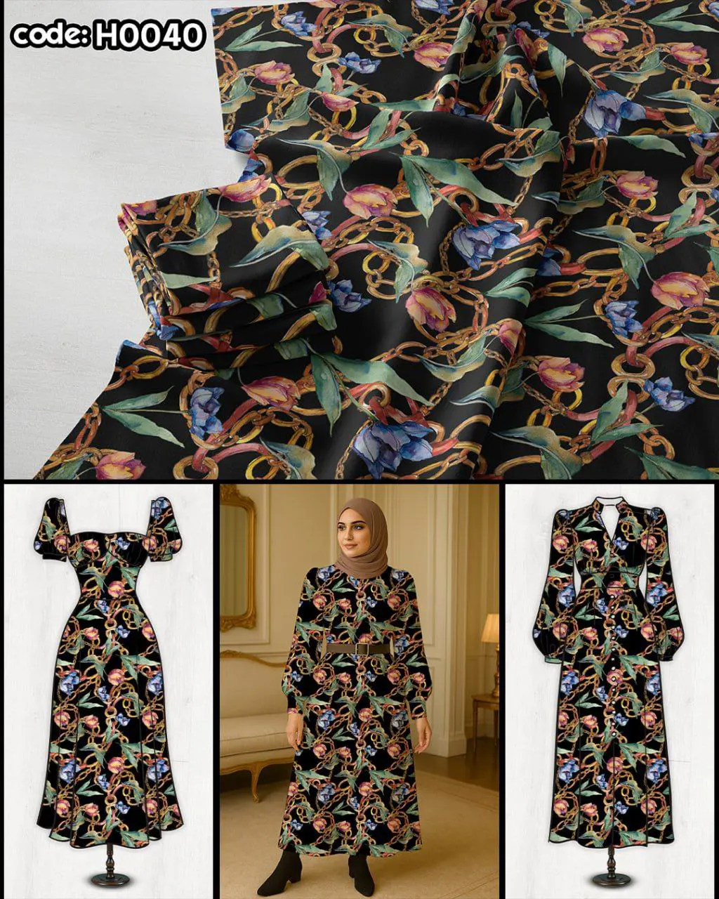 پارچه لباسی کد H0040 از مجموعه پارچههای خاص و باکیفیت برند ترمه کاور است که با چاپ دقیق، رنگهای زنده و طراحی منحصربهفرد، زیبایی و وقار را به استایل شما هدیه میدهد. این طرح برای دوخت انواع لباسهای مجلسی، مانتو، سارافون و دامن بسیار مناسب است.