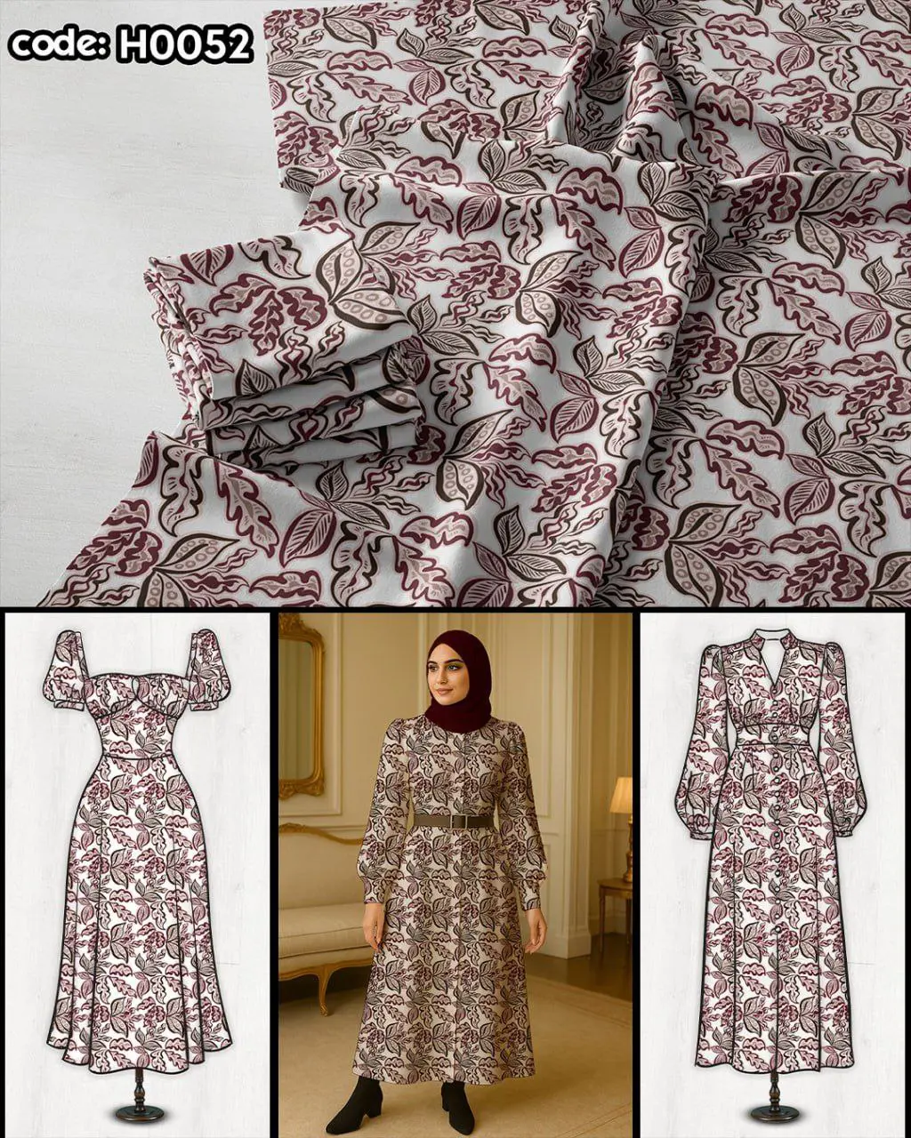 پارچه لباسی کد H0052 از مجموعه پارچههای خاص و باکیفیت برند ترمه کاور است که با چاپ دقیق، رنگهای زنده و طراحی منحصربهفرد، زیبایی و وقار را به استایل شما هدیه میدهد. این طرح برای دوخت انواع لباسهای مجلسی، مانتو، سارافون و دامن بسیار مناسب است.