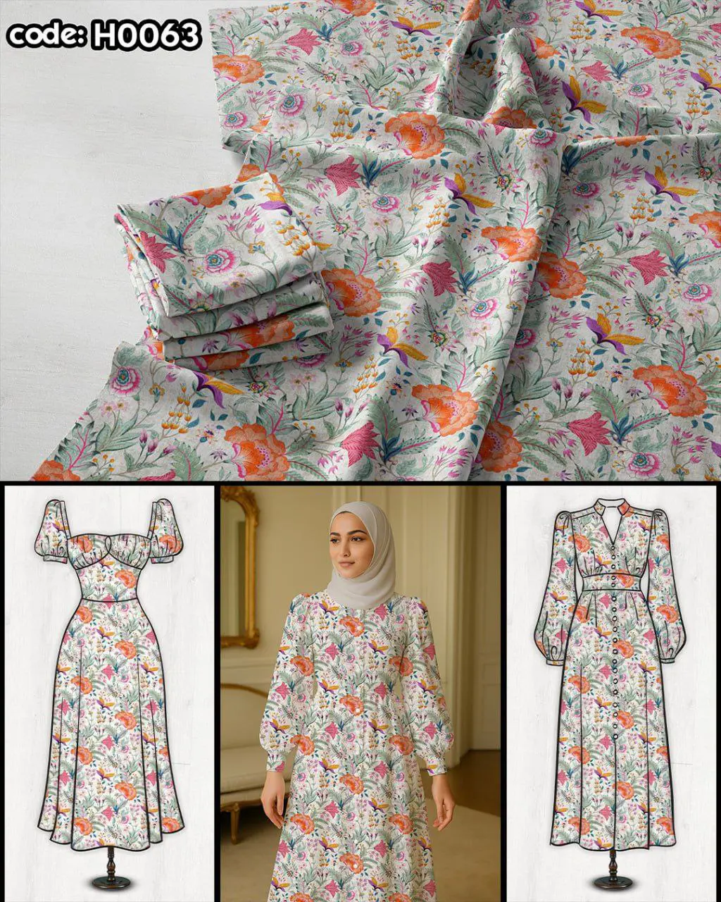 پارچه لباسی کد H0063 از مجموعه پارچههای خاص و باکیفیت برند ترمه کاور است که با چاپ دقیق، رنگهای زنده و طراحی منحصربهفرد، زیبایی و وقار را به استایل شما هدیه میدهد. این طرح برای دوخت انواع لباسهای مجلسی، مانتو، سارافون و دامن بسیار مناسب است.