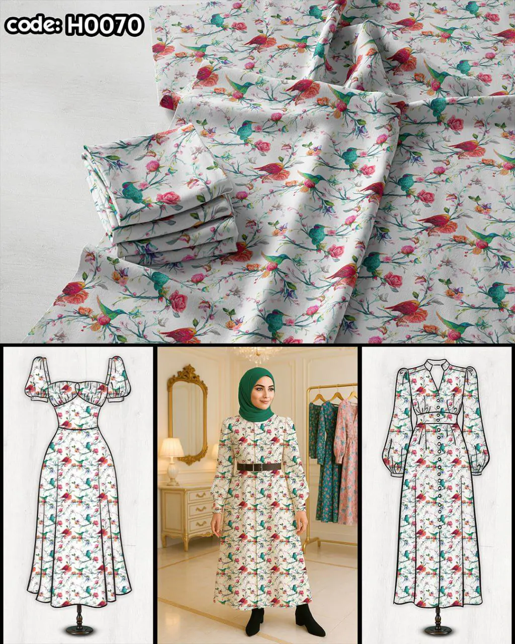 پارچه لباسی کد H0070 از مجموعه پارچههای خاص و باکیفیت برند ترمه کاور است که با چاپ دقیق، رنگهای زنده و طراحی منحصربهفرد، زیبایی و وقار را به استایل شما هدیه میدهد. این طرح برای دوخت انواع لباسهای مجلسی، مانتو، سارافون و دامن بسیار مناسب است.