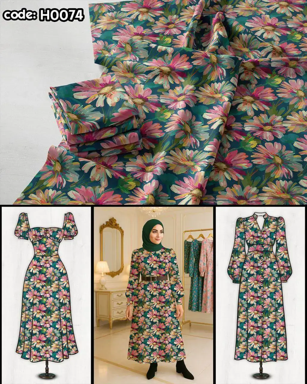 پارچه لباسی کد H0075 از مجموعه پارچههای خاص و باکیفیت برند ترمه کاور است که با چاپ دقیق، رنگهای زنده و طراحی منحصربهفرد، زیبایی و وقار را به استایل شما هدیه میدهد. این طرح برای دوخت انواع لباسهای مجلسی، مانتو، سارافون و دامن بسیار مناسب است.