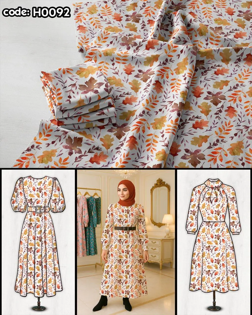 پارچه لباسی کد H0092 از مجموعه پارچههای خاص و باکیفیت برند ترمه کاور است که با چاپ دقیق، رنگهای زنده و طراحی منحصربهفرد، زیبایی و وقار را به استایل شما هدیه میدهد. این طرح برای دوخت انواع لباسهای مجلسی، مانتو، سارافون و دامن بسیار مناسب است.