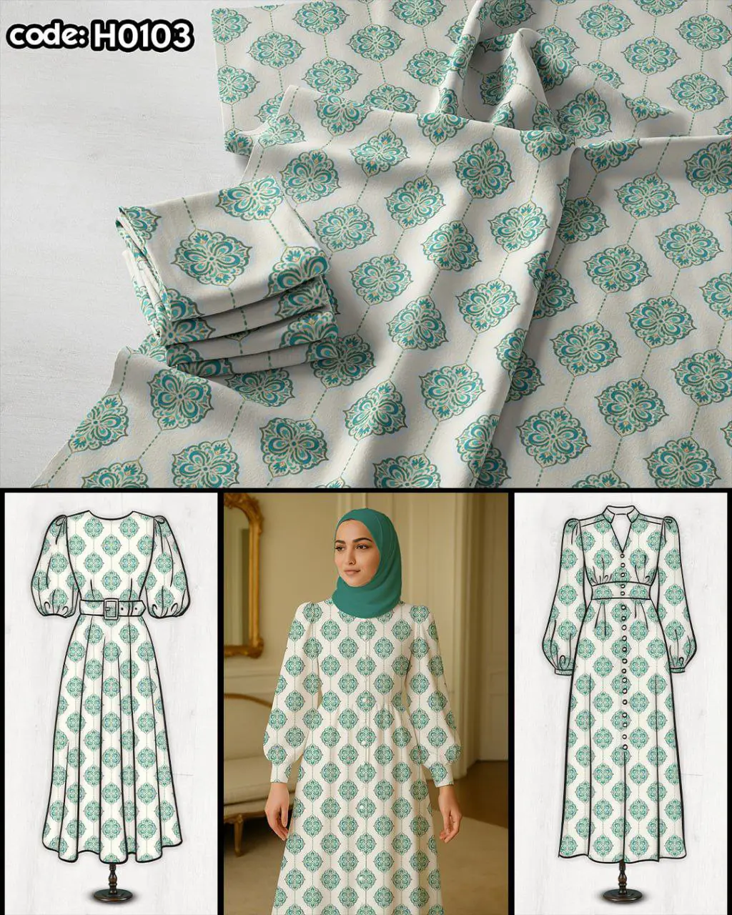 پارچه لباسی کد H0103 از مجموعه پارچههای خاص و باکیفیت برند ترمه کاور است که با چاپ دقیق، رنگهای زنده و طراحی منحصربهفرد، زیبایی و وقار را به استایل شما هدیه میدهد. این طرح برای دوخت انواع لباسهای مجلسی، مانتو، سارافون و دامن بسیار مناسب است.