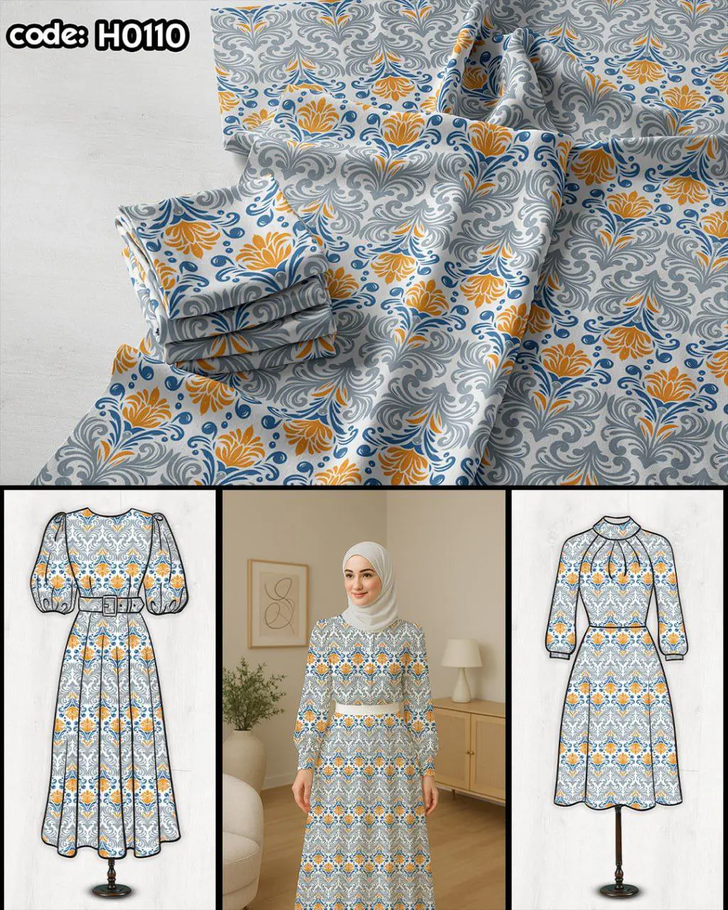پارچه لباسی کد H0110 از مجموعه پارچههای خاص و باکیفیت برند ترمه کاور است که با چاپ دقیق، رنگهای زنده و طراحی منحصربهفرد، زیبایی و وقار را به استایل شما هدیه میدهد. این طرح برای دوخت انواع لباسهای مجلسی، مانتو، سارافون و دامن بسیار مناسب است.