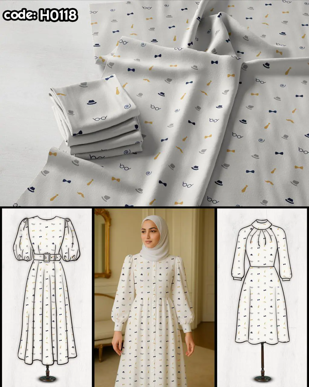 پارچه لباسی کد H0118 از مجموعه پارچههای خاص و باکیفیت برند ترمه کاور است که با چاپ دقیق، رنگهای زنده و طراحی منحصربهفرد، زیبایی و وقار را به استایل شما هدیه میدهد. این طرح برای دوخت انواع لباسهای مجلسی، مانتو، سارافون و دامن بسیار مناسب است.