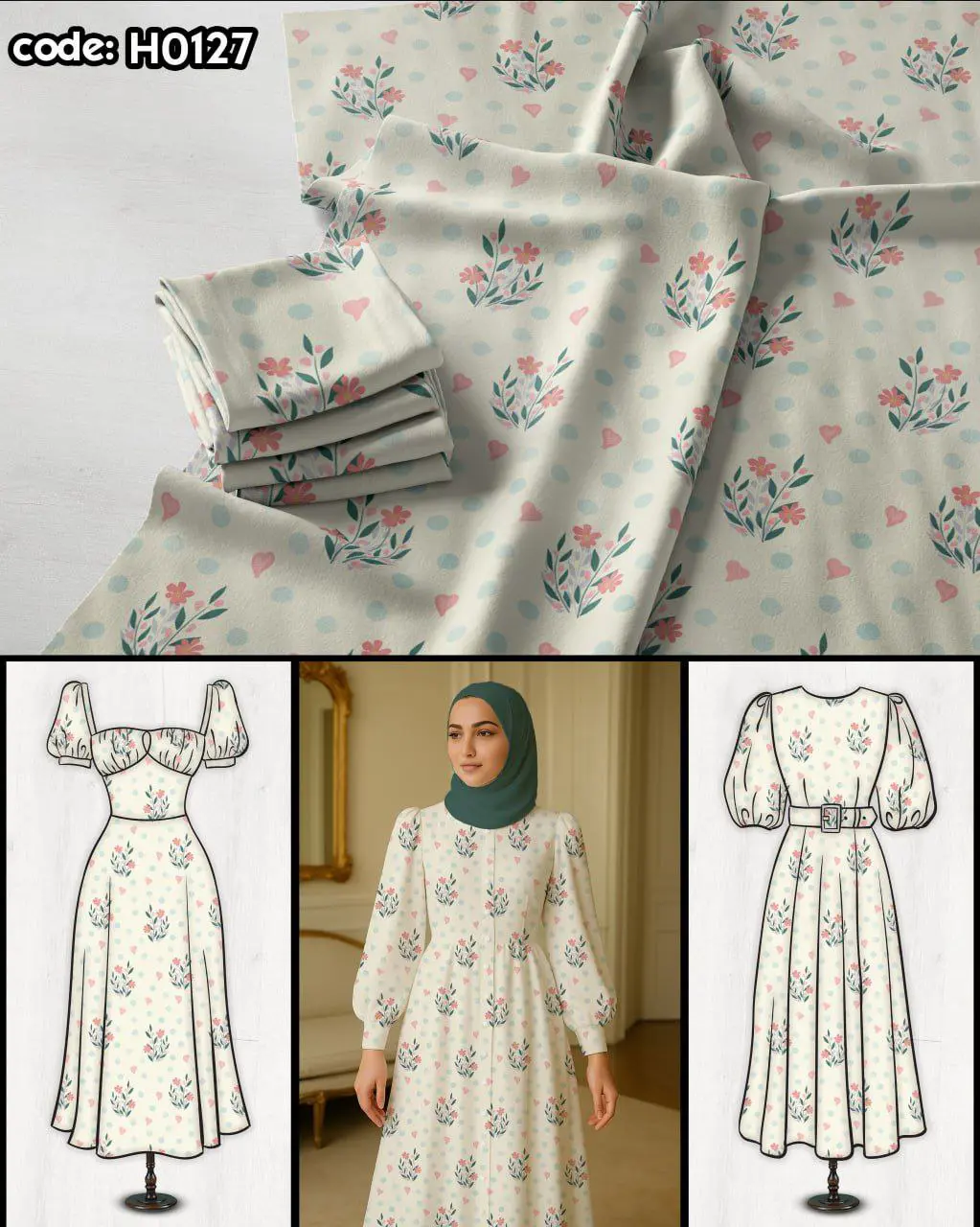 پارچه لباسی کد H0127 از مجموعه پارچه‌های خاص و باکیفیت برند ترمه کاور است که با چاپ دقیق، رنگ‌های زنده و طراحی منحصربه‌فرد، زیبایی و وقار را به استایل شما هدیه می‌دهد. این طرح برای دوخت انواع لباس‌های مجلسی، مانتو، سارافون و دامن بسیار مناسب است.
