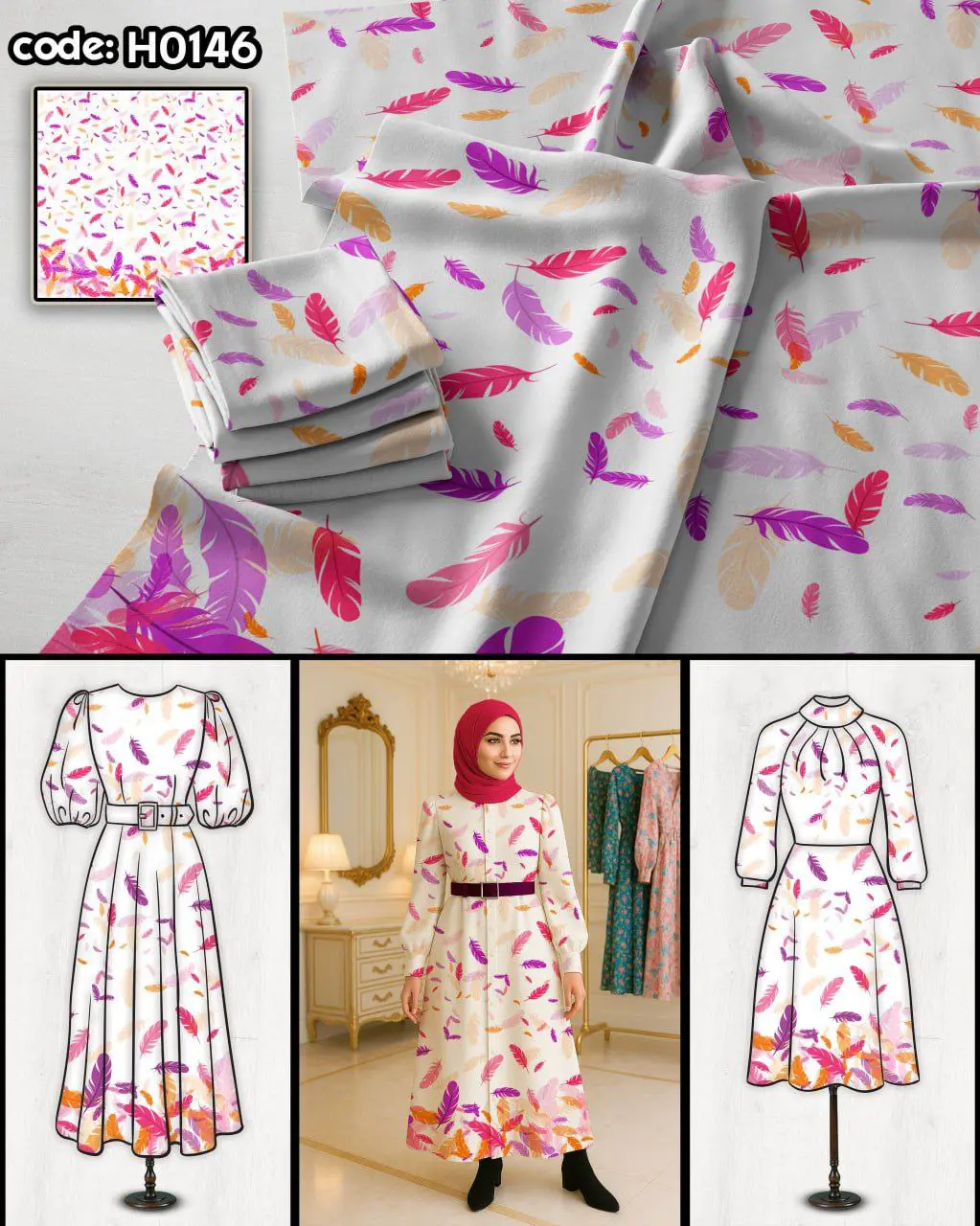 پارچه لباسی کد H0146 از مجموعه پارچههای خاص و باکیفیت برند ترمه کاور است که با چاپ دقیق، رنگهای زنده و طراحی منحصربهفرد، زیبایی و وقار را به استایل شما هدیه میدهد. این طرح برای دوخت انواع لباسهای مجلسی، مانتو، سارافون و دامن بسیار مناسب است.