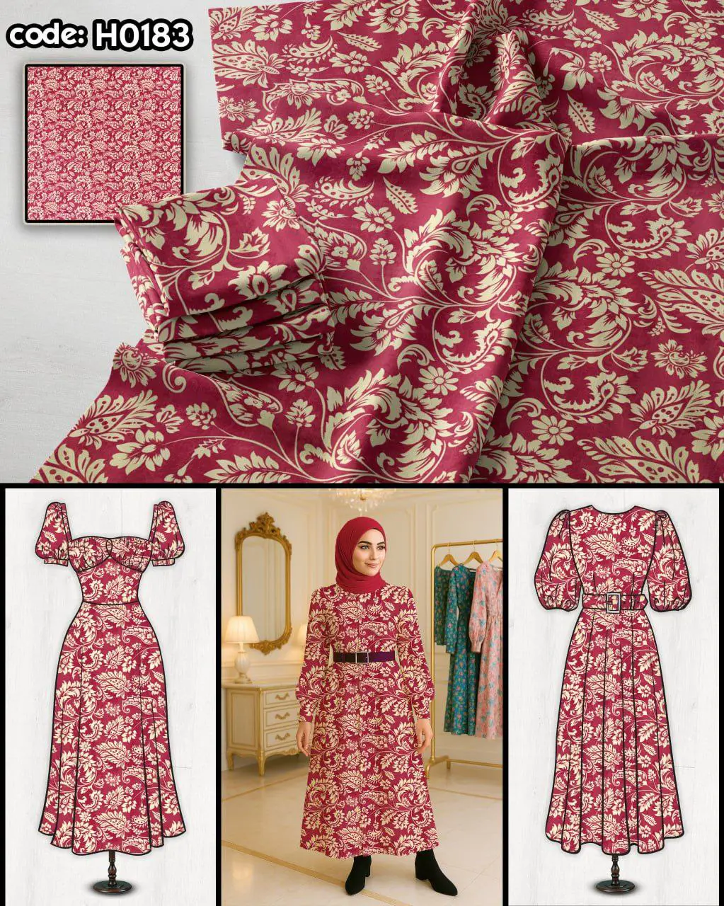 پارچه لباسی کد H0183 از مجموعه پارچههای خاص و باکیفیت برند ترمه کاور است که با چاپ دقیق، رنگهای زنده و طراحی منحصربهفرد، زیبایی و وقار را به استایل شما هدیه میدهد. این طرح برای دوخت انواع لباسهای مجلسی، مانتو، سارافون و دامن بسیار مناسب است.