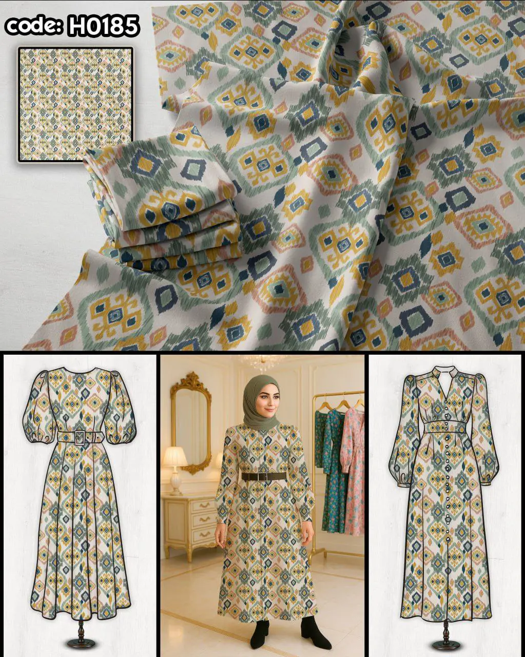 پارچه لباسی کد H0185 از مجموعه پارچههای خاص و باکیفیت برند ترمه کاور است که با چاپ دقیق، رنگهای زنده و طراحی منحصربهفرد، زیبایی و وقار را به استایل شما هدیه میدهد. این طرح برای دوخت انواع لباسهای مجلسی، مانتو، سارافون و دامن بسیار مناسب است.