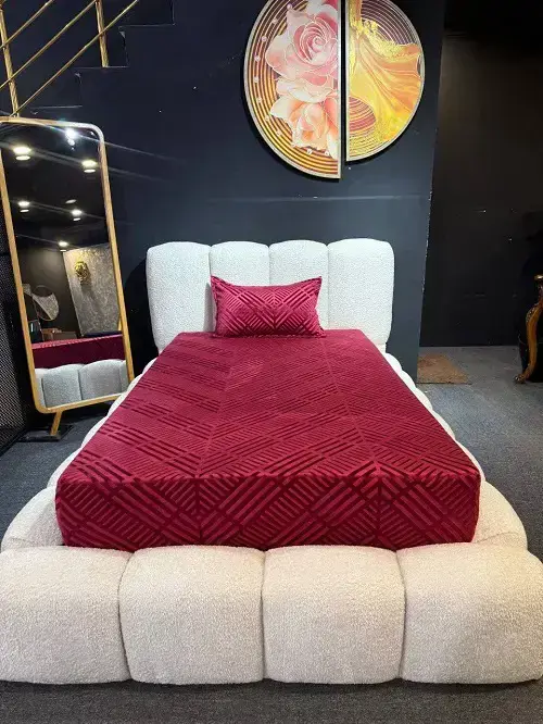 رنگ زرشکی پرانرژی این کاور حس گرما و صمیمیت را منتقل کرده و به‌خوبی با رنگ‌های خنثی مانند کرم، سفید، طوسی یا مشکی ست می‌شود. بافت مخمل نیز به تنظیم دمای بدن در طول شب کمک می‌کند تا خوابی راحت در تمام فصول داشته باشید.