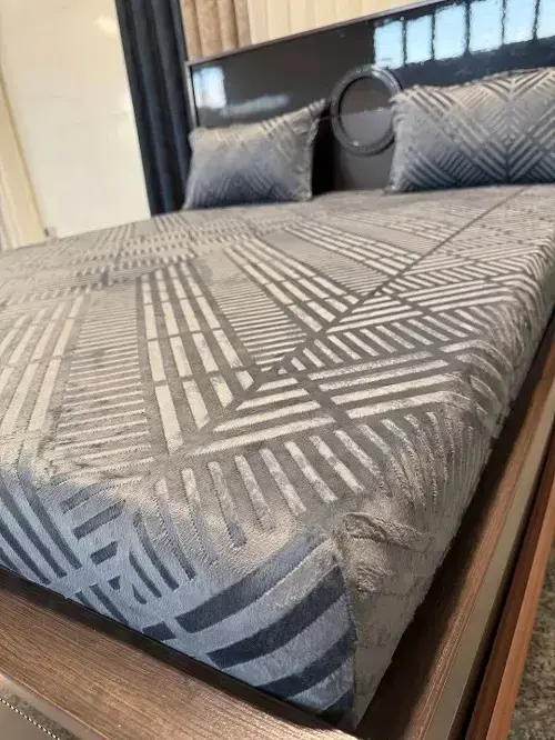 کاور تشک مخمل کشدار با طرح کجراه برجسته در رنگ طوسی تیره، انتخابی خاص و مدرن برای فضاهای مینیمال و دکوراسیونهای امروزی است. این رنگ با ویژگیهای خنثی و شیک خود، حس ثبات، آرامش و نظم را به اتاق خواب میآورد و با رنگهای نقرهای، سفید، مشکی و طلایی هماهنگی بینظیری ایجاد میکند.