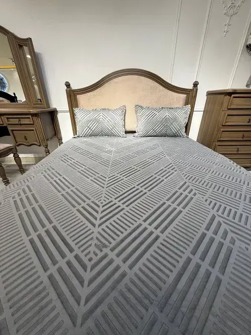 کاور تشک مخمل کشدار با طرح کجراه برجسته و رنگ طوسی روشن ملایم، انتخابی ایدهآل برای کسانی است که به دنبال ایجاد فضایی آرام، مدرن و شیک در اتاق خواب خود هستند. طوسی روشن یک رنگ خنثی و مینیمال است که بهخوبی با هر پالت رنگی دیگری ترکیب شده و قابلیت انعطافپذیری بالایی در دکوراسیون دارد.