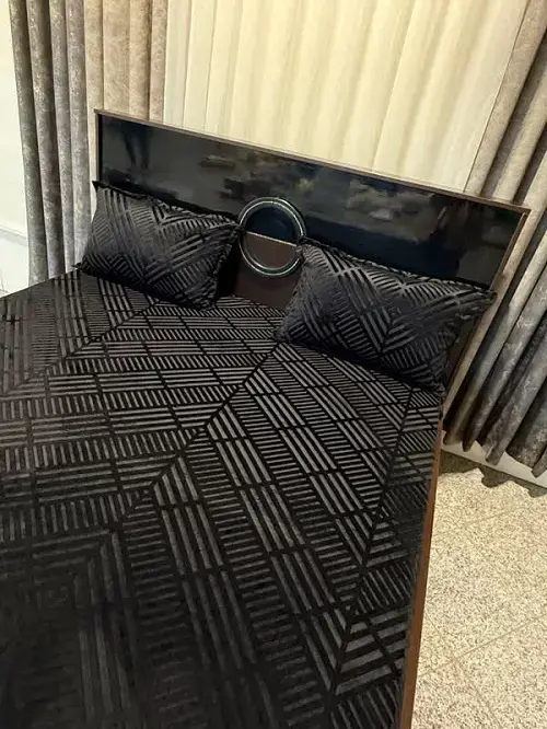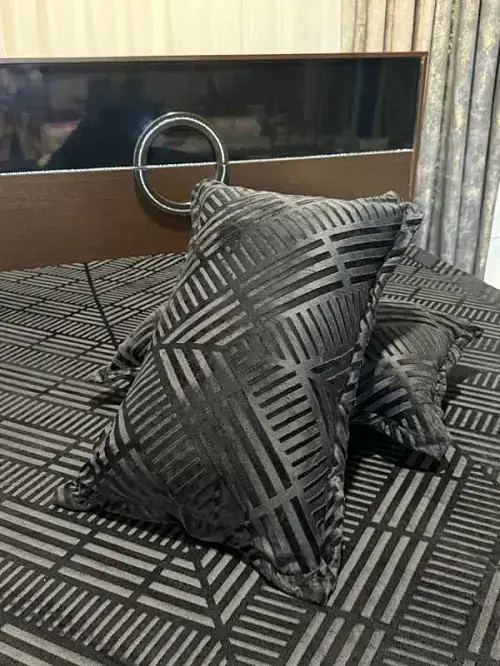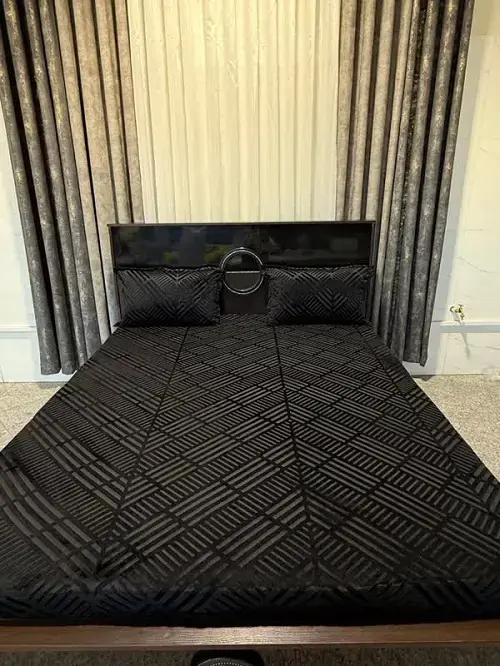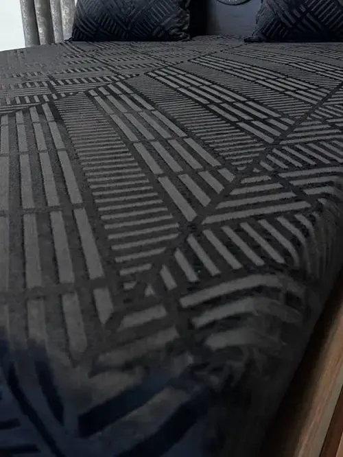 کاور تشک مخمل کشدار با طرح کجراه برجسته در رنگ مشکی، انتخابی جسور، شیک و بسیار لوکس برای فضاهای مدرن و مینیمال است. رنگ مشکی نماد قدرت، سادگی و ظرافت است و در ترکیب با رنگهای سفید، طلایی، نقرهای یا طوسی جلوهای چشمگیر و حرفهای به اتاق خواب میبخشد.